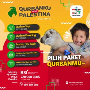 Tahun ini, KNRP Jabar kembali mengajak Anda berqurban untuk rakyat dan pengungsi Palestina. Hanya dengan 2.300.000, Anda sudah dapat berqurban setara 1/7 lembu. Setiap tahun, rakyat dan pengungsi Palestina merayakan hari raya idul adha dengan amat sederhana. Jika di Asia Tenggara hari besar umat Islam adalah Idul Fitri, hari besar umat Islam di tanah Arab secara umum adalah Idul Adha. Sediakah kita membahagiakan saudara-saudara kita, rakyat dan pengungsi Palestina pada Idul Adha tahun ini?